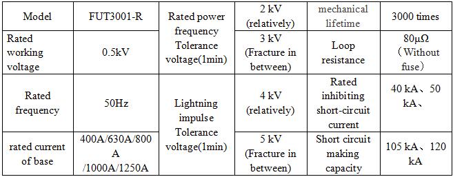 FUT series fuse type isolating switch is single phase AC 50Hz low voltage switch equipment For rated voltage 0.5kV power system,Provide effective protection when short circuit or overload occurs at low voltage side of transformer.