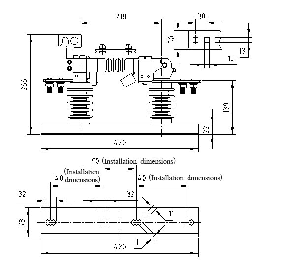 Structural features: The blade of breaker in the low-voltage side line can be removed for maintenance to ensure the clear breakpoint, and also effectively ensure the safety of personnel. The fuse can be replaced on the ground and easy for maintenance. The main contact blade uses double-layer copper T2 blade, with cold-drawn round edge. The outer silver is plated and has OSP treatment, with high electrical conductivity, low contact resistance.