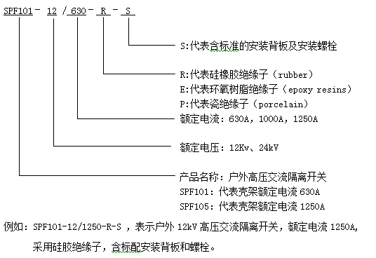 SPF系列户外高压交流隔离开关为单相钩棒不带负荷操作型开关,用于交流50Hz或60Hz,额定电流630A、1000A、1250A,额定电压12kV及以下的架空线路中主要与断路器或负荷开关配合使用,为其提供可见断口,提高设备操作及维修的安全性。在无负荷的情况下采用带电操作杆进项分合操作。
