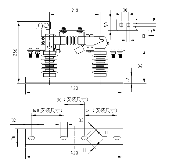 采用高性能进口户外环氧树脂绝缘支柱,具有憎水、自洁、抗紫外线,不受气候影响而老化的性能。